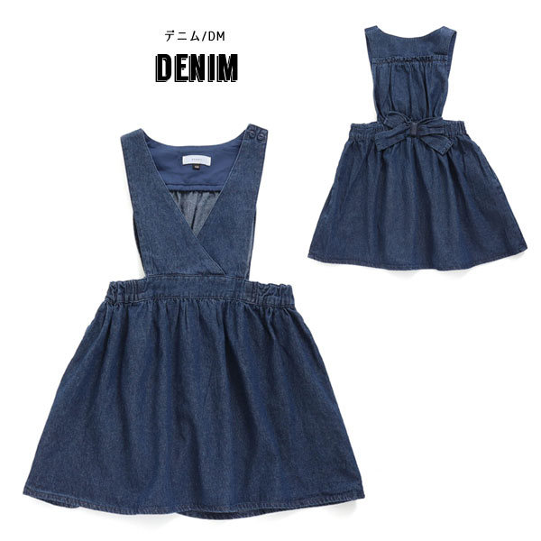 バックのリボンも可愛く 後ろ姿を見せます:*:・ デニム&薄手ツイル素材で シンプルで上品です。