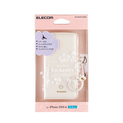 エレコム iPhone 12 mini 用 レザーケース Enchante'e 磁石付き リング付き 手帳型 アイフォン 12 ミニ 新型 iPhone12 mini iPhone 2020 5.4 インチ レザー ケース カバー スマホリング ホワイト PM-A20APLFJM2WH